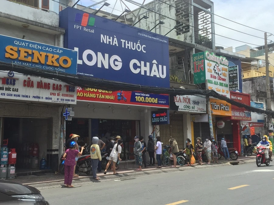 Khách hàng xếp hàng mua thuốc ở quận 10. ẢNH: TÚ UYÊN