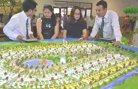 Thị trường BĐS dự báo sẽ có nhiều thay đổi trong thời gian tới. Trong ảnh: Khách hàng đang tìm hiểu dự án nhà đất. Ảnh: QUANG HUY
