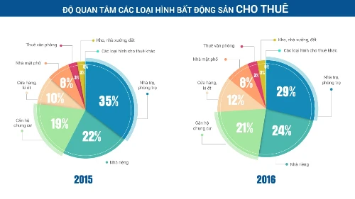 Mức độ quan tâm của người dân đối với loại hình bất động sản cho thuê trong trong 2 năm 2015 và 2016.