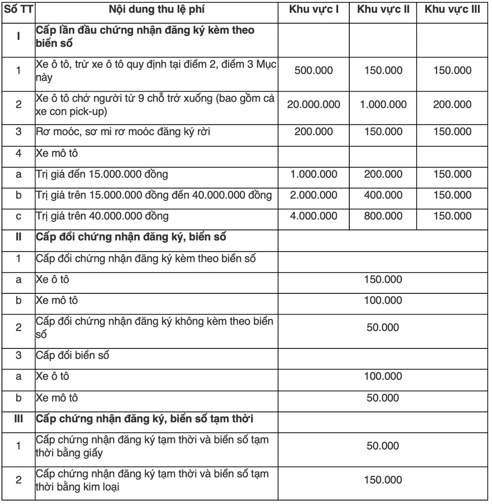 Lưu ý: Lệ phí cấp chứng nhận đăng ký, biển số phương tiện giao thông quy định tại Thông tư 60/2023 áp dụng thống nhất trong cả nước.