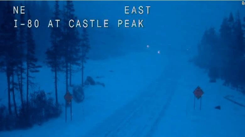 Hình ảnh camera ghi nhận sáng 27-11 tại một đường cao tốc ở khu vực Soda Springs, quận Nevada, bang California. Ảnh: CNN