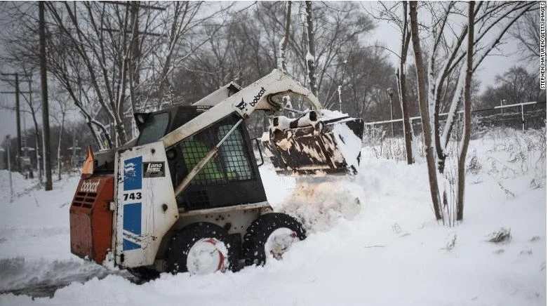Một người đàn ông đang cào tuyết tại TP Minneapolis sau khi một đợt bão tuyết tấn công khu vực này. Ảnh: CNN