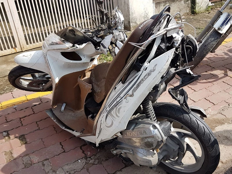 Tại hiện trường, xe máy nằm la liệt, hư hỏng nặng. Trên mặt đường xuất hiện vết cày kéo dài, nhiều bộ phận trên xe máy bị vỡ văng tung tóe. Người dân cho biết những nạn nhân bị thương đã được đưa đi sơ cấp cứu. Nguyên nhân có thể là do xe tải cẩu bị mất phanh tại khúc cua.