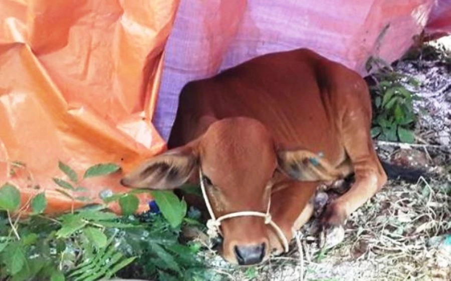 Con bò trao cho gia đình ông Nguyễn Đình Thìn đã phát bệnh lở mồm long móng. Ảnh: CTV