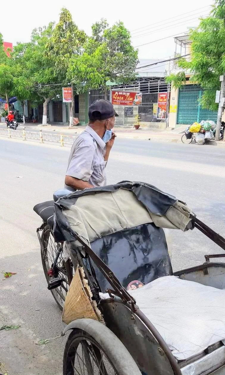 Có bác xích lô lớn tuổi lúng túng đứng hoài mà không tới quầy. Ảnh: THANH SƠN