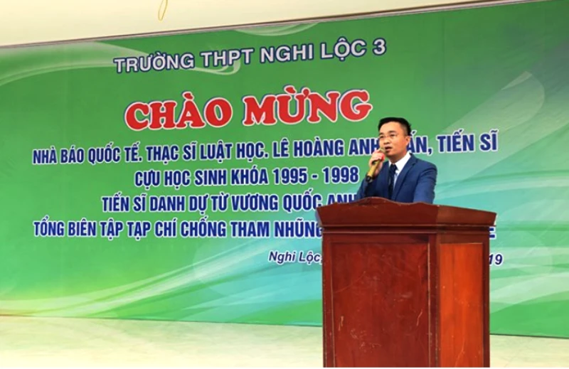 Trường THPT Nghi Lộc 3 lễ chào mừng Nhà báo quốc tế Lê Hoàng Anh Tuấn.