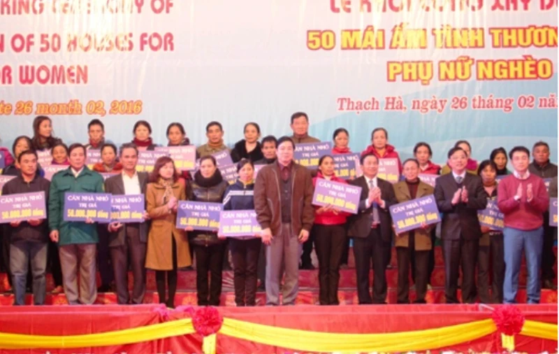 Ngày 28-2-2016, buổi lễ khởi công xây dựng 50 mái ấm tình thương cho phụ nữ nghèo được tổ chức trang trọng tại Trung tâm Văn hóa thể thao huyện Thạch Hà (Hà Tĩnh).