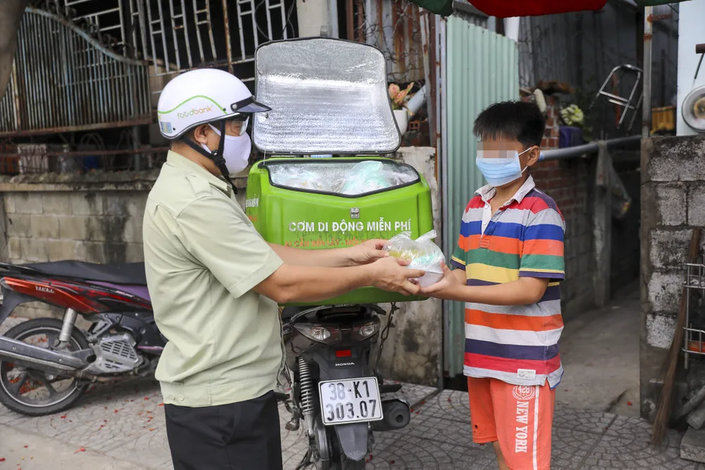 "Do mùa dịch, không thể tập trung người dân lại để phát cơm, "cơm di động" được hình thành có thể đi đến từng con hẻm nhỏ để phát được cho nhiều người khó khăn hơn"- anh Nguyễn Văn Lưu, đại diện nhóm cho biết.