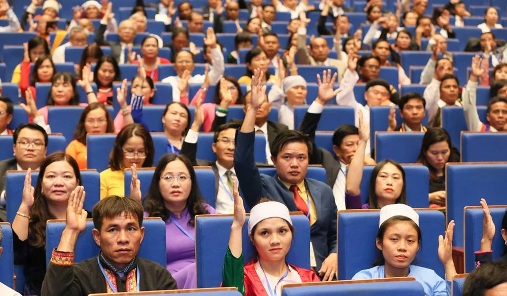 Sau khi thảo luận, các đại biểu đã biểu quyết nhất trí thông qua điều lệ MTTQ Việt Nam khóa IX.