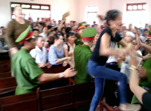 Ngay sau khi toà vừa tuyên án, nhiều người gây náo loạn phòng xử.
