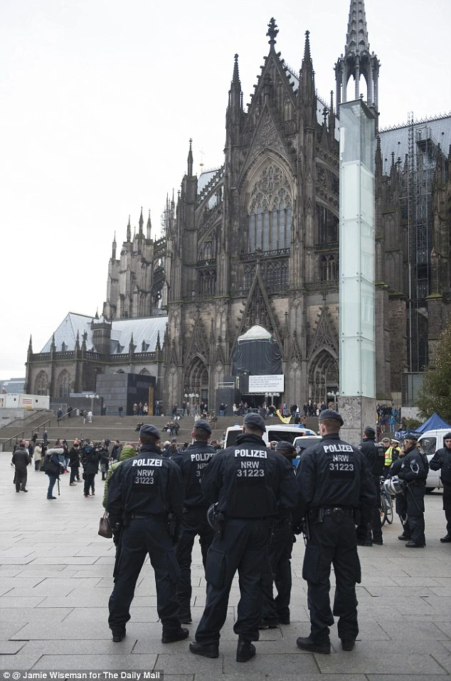 Cảnh sát tuần tra TP Cologne nhiều hơn sau sự cố người nhập cư tấn công tình dục đêm giao thừa. Ảnh: DAILY MAIL