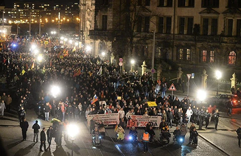 Tại Đức tối 16-11, hàng ngàn người ủng hộ tổ chức bài Hồi giáo Pegida đã biểu tình ở Dresden (ảnh) đổ lỗi cho người nhập cư về vụ khủng bố ở Pháp. Tại Hungary, Thủ tướng Viktor Orban tố cáo bọn khủng bố đã lợi dụng làn sóng người di cư để xâm nhập châu Âu. Tại Ba Lan, Ngoại trưởng Witold Waszczykowski đề nghị đưa người nhập cư Syria trở về Syria chiến đấu với Nhà nước Hồi giáo.