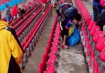 Dù Nhật là đội thua chung cuộc trong trận đấu với Bờ Biển Ngà nhưng thế giới lại nể phục với các cổ động viên Nhật và đội Nhật. Đó là hình ảnh các cổ động viên Nhật sau khi cổ vũ cho đội nhà trên sân Arena Pernambuco đã chia nhau mỗi người một cái túi nhựa để đi nhặt rác trên khán đài (ảnh).