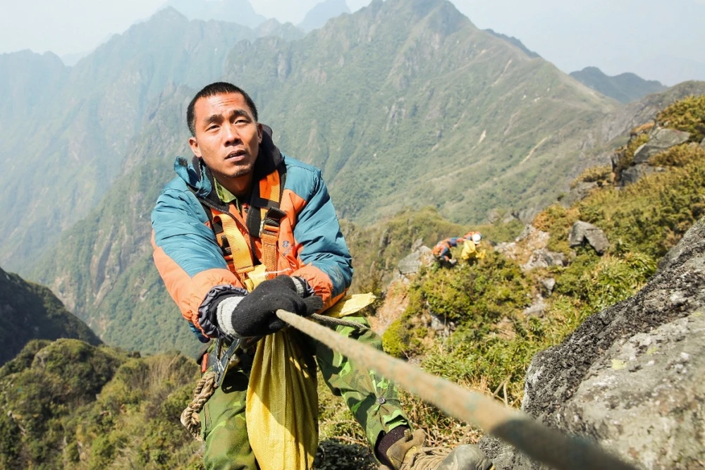 7 giờ 30 sáng, trên đỉnh Fansipan sương mù đặc quánh, cái lạnh khiến người ta muốn đông cứng. Đeo sẵn khẩu trang dày để giữ ấm hơi thở và chống mất sức, anh Nguyễn Khắc Tưởng cẩn thận kiểm tra lại dây kéo rồi từ từ nhả dây, thả người xuống vách núi. Lần quanh các bụi cây gần khu vực đỉnh trước, sau đó tản dần ra xa, anh Tưởng cùng năm đồng đội bắt đầu công việc dọn rác trên nóc nhà Đông Dương như thường lệ. Mây phủ, sương giá không nhìn rõ mặt người, địa hình quanh khu vực đỉnh 3.143 m hiểm trở, các vách đá dựng đứng, trơn trượt, đội kỹ sư phải chia theo nhóm hai người một luôn đi sát nhau để phòng bất trắc. Mỗi người một bao tải cột bên mình, các anh tìm và thu gom rác thải do du khách xả ra quanh đỉnh Fansipan.