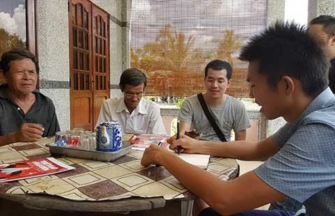 Ba đạo diễn và đại diện các hộ nông dân đang lên kế hoạch thực hiện phim. Ảnh: MÂY CỘNG MÂY