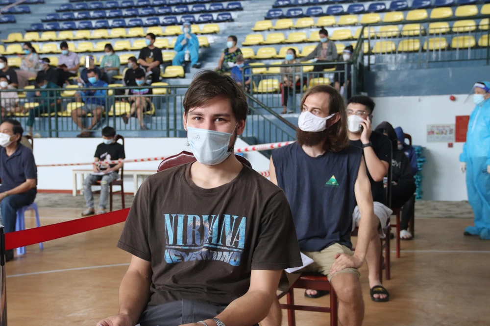 Ghi nhận tại điểm tiêm ở nhà thi đấu Hồ Xuân Hương, nhiều người dân kể cả cả người nước ngoài đang sinh sống và làm việc tại quận 3 sau khi biết thông tin đã tự đến và đăng ký tiêm chủng.