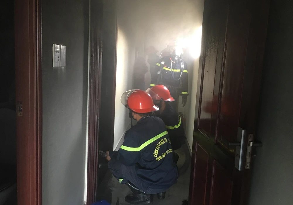 Vụ cháy đã làm hư hỏng nhiều vật dụng trong phòng. Nguyên nhân ban đầu được xác định là do chập điện thiết bị điều hòa.