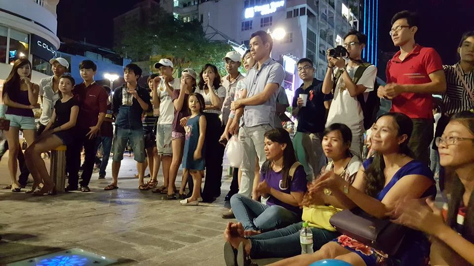 Họ đến từ nhiều quốc gia khác nhau, trong đó nhiều bạn trẻ Việt Nam đang có mặt trên phố đi bộ cũng cùng tham gia. Sau khi hát những bản tình ca Pháp, họ đốt nến và đặt những đóa hồng, cùng cầu nguyện cho những người đã mất và cho nền hòa bình thế giới.
