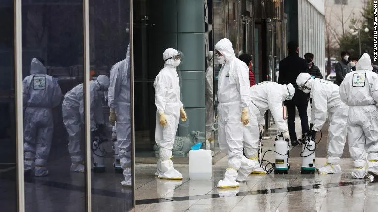 Hàn Quốc đẩy mạnh việc khử trùng, sát trùng các địa điểm có nguy cơ lây nhiễm virus COVID-19. Ảnh: CNN