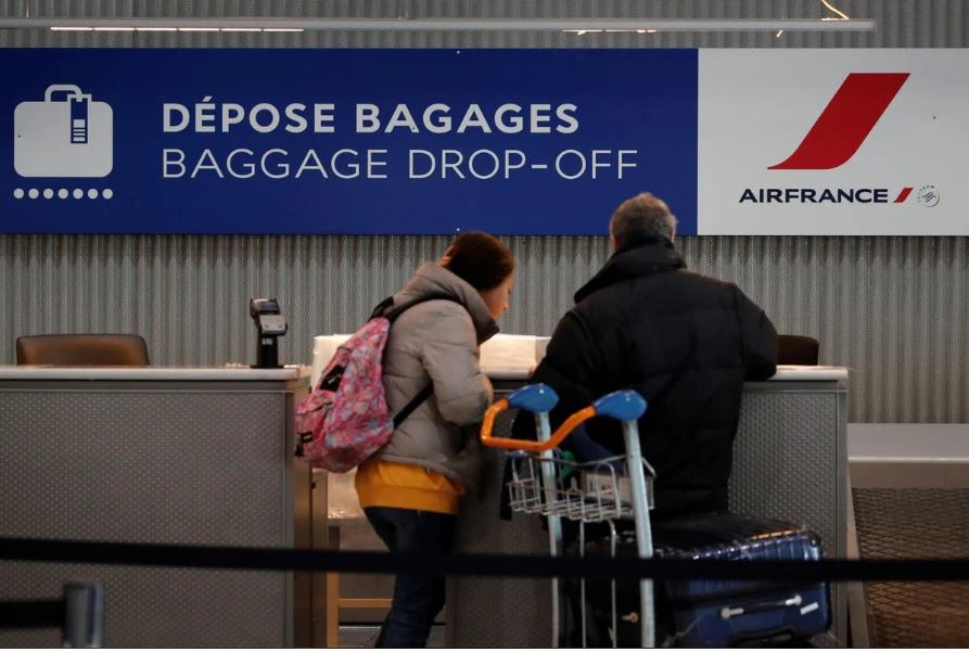 Làm thủ tục tại quầy hãng Air France ở sân bay Charles de Gaulle (Pháp) ngày 12-3 để bay về Mỹ, sau khi Mỹ có lệnh sẽ cấm bay từ châu Âu. Ảnh: REUTERS