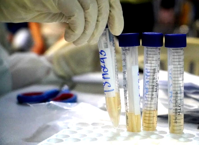Mẫu người bệnh được đưa xét nghiệm SARS-CoV-2. Ảnh: MINH TÂM