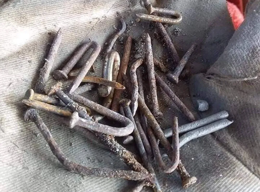 Số đinh rải trên quốc lộ được người dân thu gom. Ảnh: FB