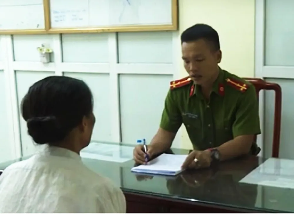 Công an làm việc với bà TTL. Ảnh công an cung cấp