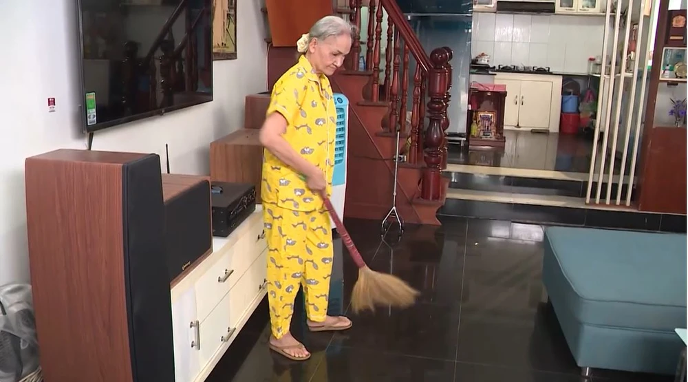 Bà Kim Anh có thể dễ dàng đi lại, tự lau dọn nhà cửa.