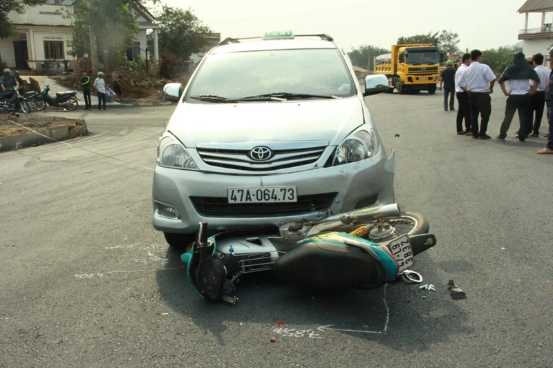 Người dân tại hiện trường cho biết vào thời điểm trên, xe máy biển số 47L9-3832 do chị Nguyễn Thị Hòa (SN 1981, trú thôn 3, xã Cư Êbur) điều khiển chạy trên đường B, thôn 3 rồi băng ngang bùng binh đường vành đai tránh TP Buôn Ma Thuột thì bất ngờ bị xe taxi của hãng xe M.L biển số 47A-064.73 chạy với tốc độ cao tông vào, kéo lê gần 30 m mới dừng lại.