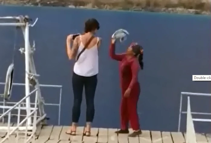 Chiều 22-1, một tài khoản Facebook đã đăng tải một đoạn clip ghi lại hình ảnh một người phụ nữ mặc áo đỏ ra xua đuổi, có những lời lẽ thiếu văn hóa với hai vị khách du lịch người nước ngoài tại điểm thăm quan Tuyệt tình cốc (hồ nước tự nhiên có màu xanh đặc biệt thuộc xã An Sơn, huyện Thủy Nguyên, Hải Phòng).
