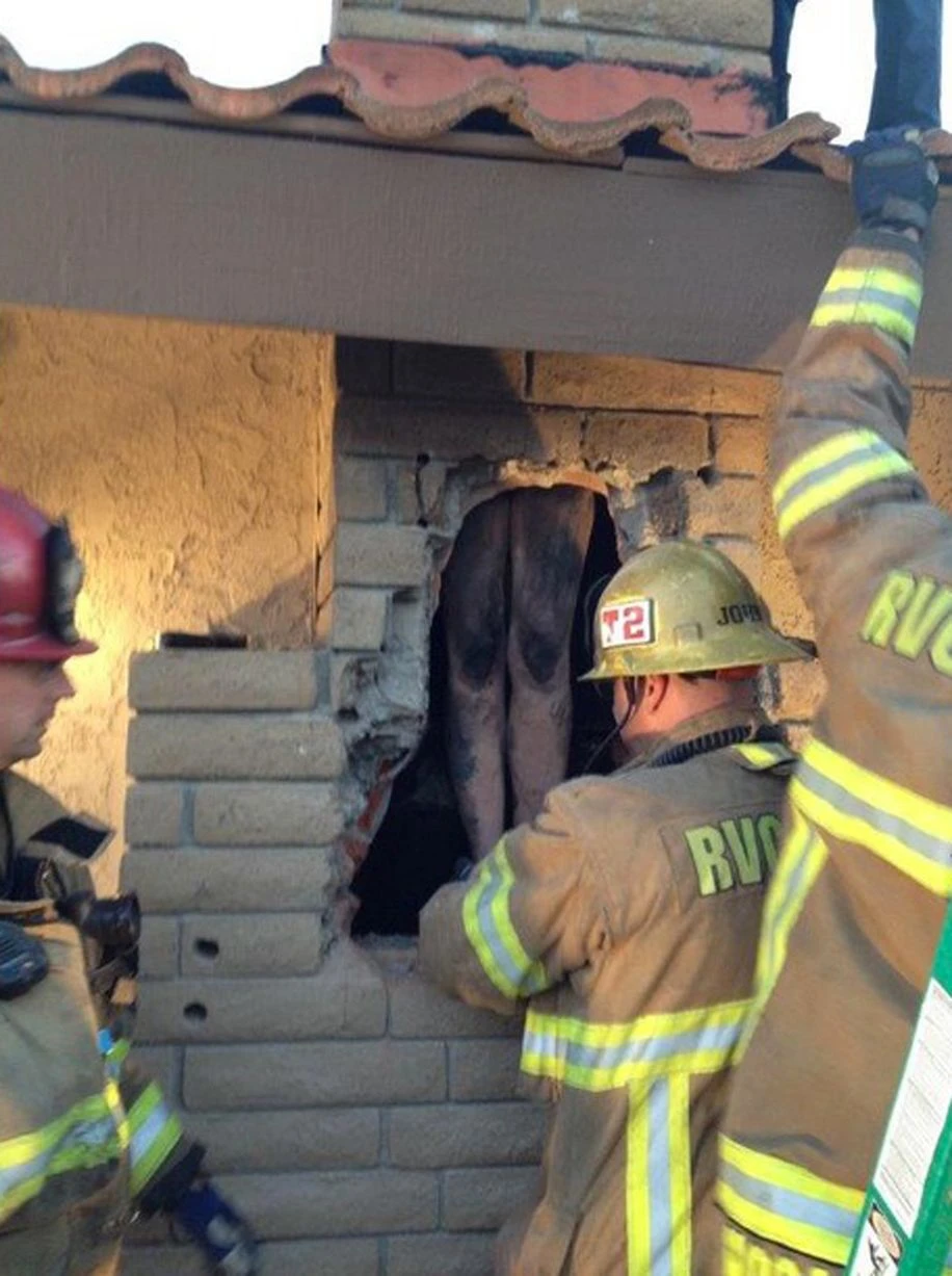 Người phụ nữ 35 tuổi đã chui vào ống khói nhà chồng cũ vào giữa đêm. Cô đã cởi hết quần áo với hy vọng sẽ chui vừa ống khói rộng 12 inch (0,3 mét). Nhưng đến 5h sáng, khi chui được nửa chừng, cô ấy đã phải kêu cứu vì không thể chui qua được nữa.