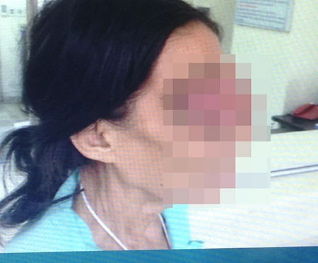 Bệnh nhân với khối u khủng trên mặt. Ảnh: Tùng Sơn.