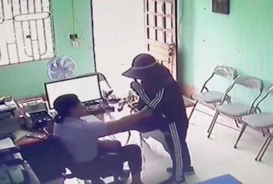 Sáng 3-8, nữ nhân viên đang ngồi trước máy tính để làm việc trong phòng của Quỹ Tín dụng nhân dân Phong Bắc Trung, đóng tại thôn Hợp Tiến (xã Kỳ Bắc, huyện Kỳ Anh) thì có một phụ nữ bịt kín mặt, đội mũ đi vào phòng.