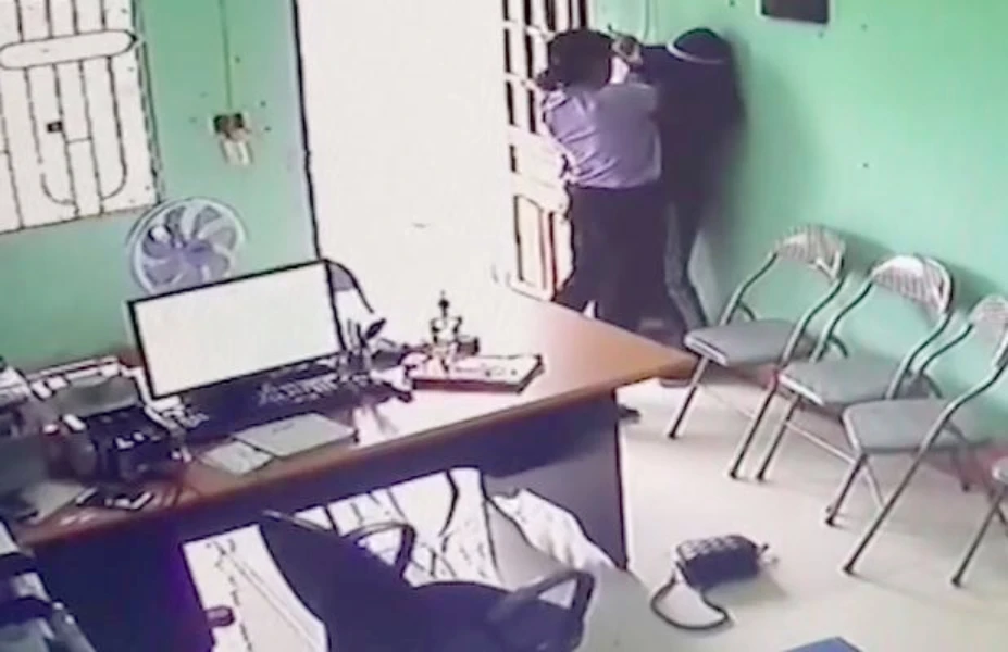 Nữ nhân viên cố gắng giằng lấy chiếc túi và tước lấy con dao. Sau một lúc hai bên giành nhau thì nữ nhân viên chạy được ra ngoài phòng và nhanh tay đóng cửa phòng lại, tri hô mọi người đến giúp.