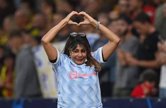 Người phụ nữ rạng rỡ và rất "teen" khoe áo đấu được Ronaldo tặng. ẢNH: REUTERS