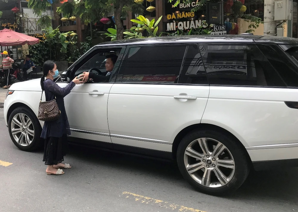 Chị Cúc tặng dưa hấu cho một tài xế. Ảnh: HẢI HIẾU