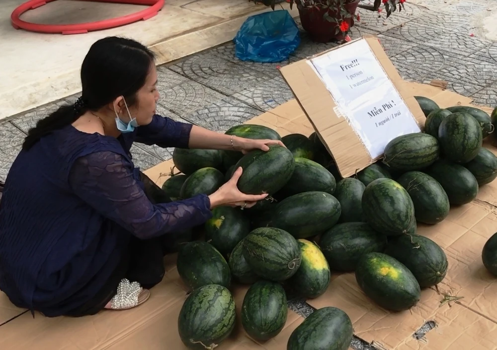 . Cũng trong sáng nay, tại TP.HCM, một người dân ở quận 5 đã bỏ tiền túi mua 10 tấn dưa hấu từ Gia Lai về phát miễn phí cho người dân.