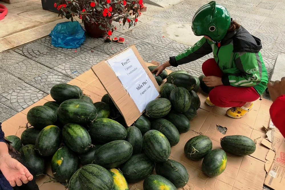 Chị Nguyễn Thị Kim Cúc, chủ khách sạn Soho trên đường Hà Bổng (phường Phước Mỹ, quận Sơn Trà, Đà Nẵng) cho biết đã chi ra 5 triệu đồng để mua một tấn dưa hấu để tặng miễn phí cho người dân. Chị Cúc đã đem dưa hấu ra trước khách sạn của mình với tấm biển hai thứ tiếng Việt và Anh với nghĩa “Miễn phí, mỗi người 1 trái”.
