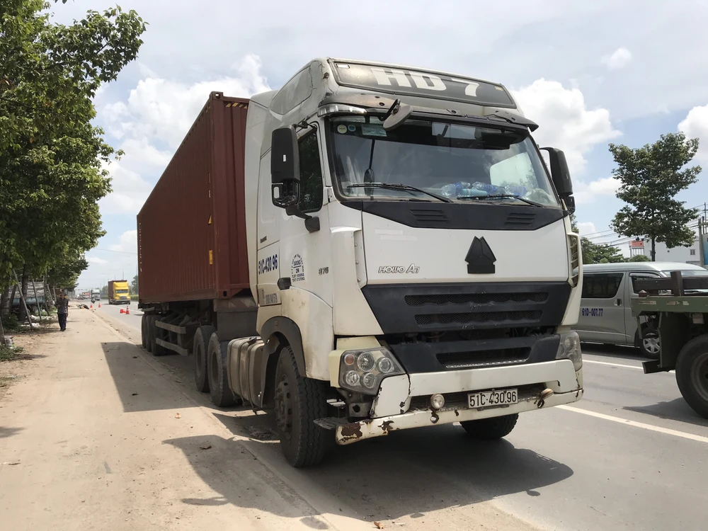 Chiếc xe container chạy thêm một đoạn mới dừng hẳn. Ảnh: KD