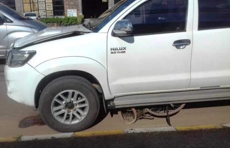 Hiện trường vụ tai nạn ở Lào, chiếc xe đạp của bà Việt bị cuốn xuống dưới ô tô bán tải. Ảnh người lao động Việt Nam ở Lào cung cấp