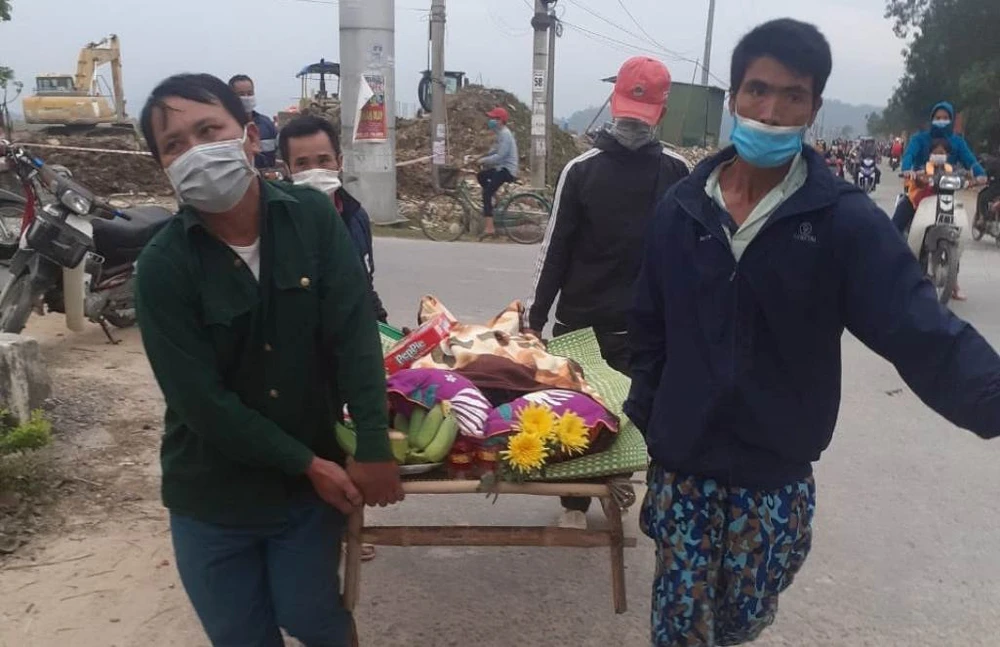 Chính quyền địa phương và người thân, người dân đưa thi thể chị Thảo về nhà để tổ chức lễ tang.