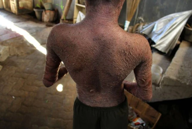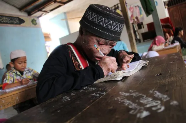 Những bức ảnh được ghi lại bởi nhiếp ảnh gia 35 tuổi Nurcholis Anhari Lubis cho thấy cậu bé như một con rắn đang ở thời kì thay da. “Tôi thật sự buồn vì em không được sinh ra như những người bình thường. Em phải sống với những vảy da cứ bong tróc trên cơ thể. Nó giống như lớp da bị bỏng từ chân lên đến đầu. Trông em rất tội nghiệp”.