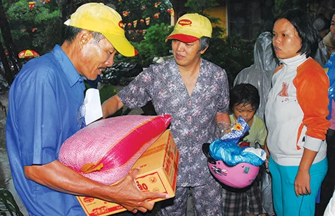 Tiểu thương trao quà từ thiện cho người nghèo tại TP.HCM. Ảnh: Tam Anh