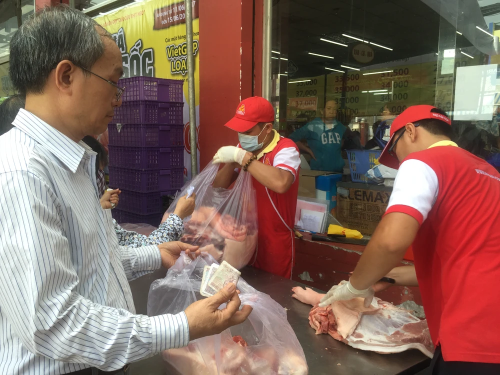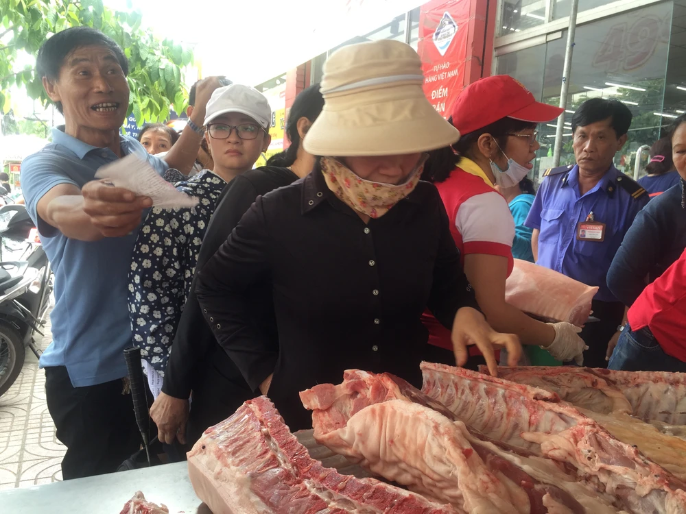 Trong khi đó, cửa hàng SanHa Foods (951 Tạ Quang Bửu, P6, Quận 8) khi bán thịt heo VietGAP với giá 35.000 đồng/kg cũng đã thu hút đông người dân đến chọn mua.