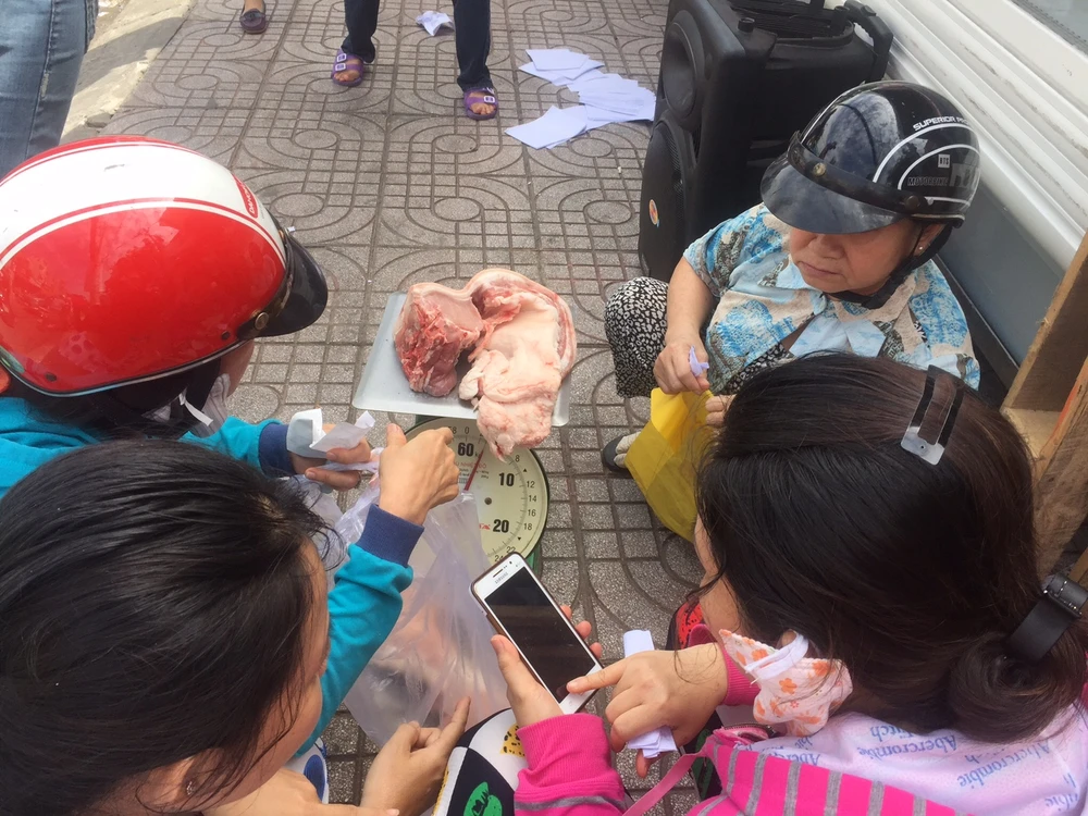 Sau khi nhận được lượng heo pha lóc, chị đã tìm được bốn người khác đang có nhu cầu cho loại heo này. Mỗi người trong nhóm đã tự “chia” và trả tiền theo số kí mà họ cần.