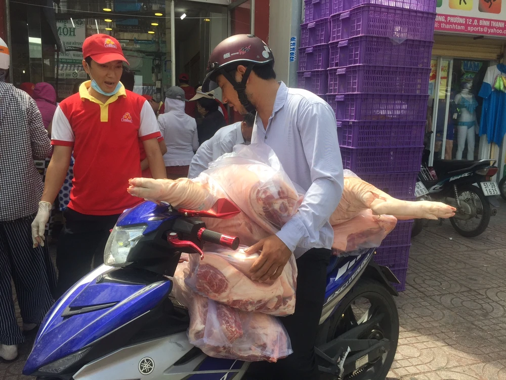 Khách hàng từ Quận 6 tiện đường mua thịt heo về chia cho người thân