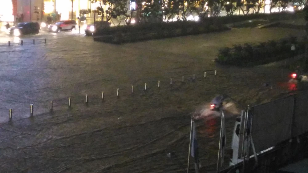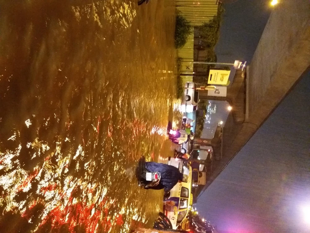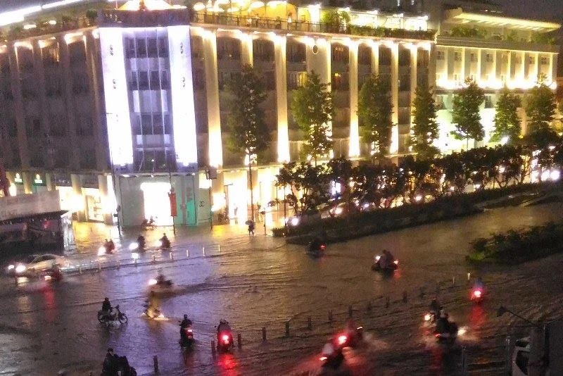 Phố đi bộ đường Nguyễn Huệ ngập mênh mông trong biển nước. Theo báo cáo nhanh của Công ty TNHH MTV Thoát nước đô thị TP.HCM, cơn mưa lớn kéo dài chiều 26-9, vũ lượng mưa vừa lớn vừa trải rộng trên khắp địa bàn TP. Tính đến 17 giờ 45 phút đã có 30 điểm ngập xảy ra trên nhiều địa bàn quận, huyện.