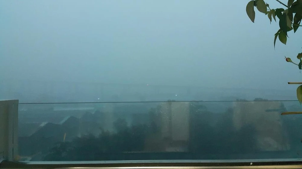 Trời tối mịt mùng, mưa to mù mịt. Trong ảnh: Cầu Phú Mỹ chìm trong màn mưa lớn. Ảnh: ĐL