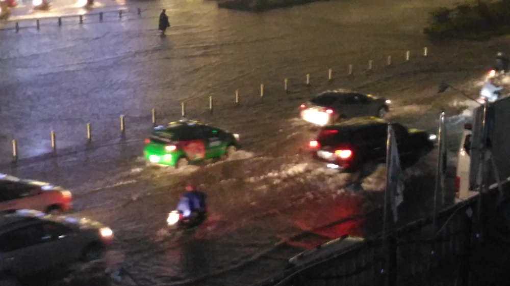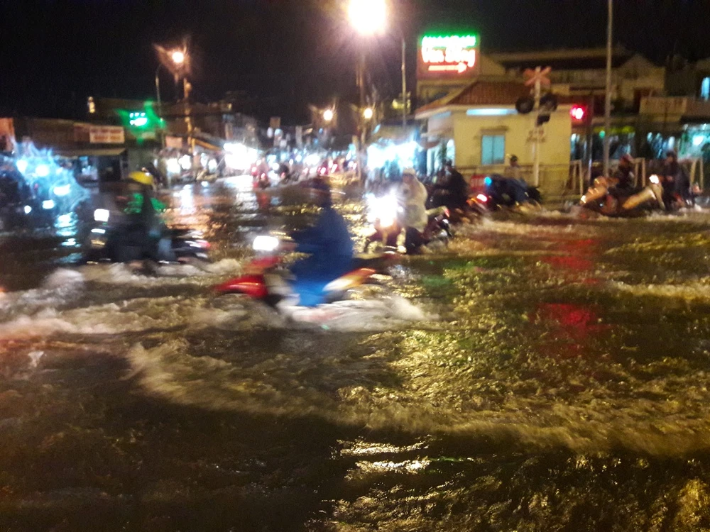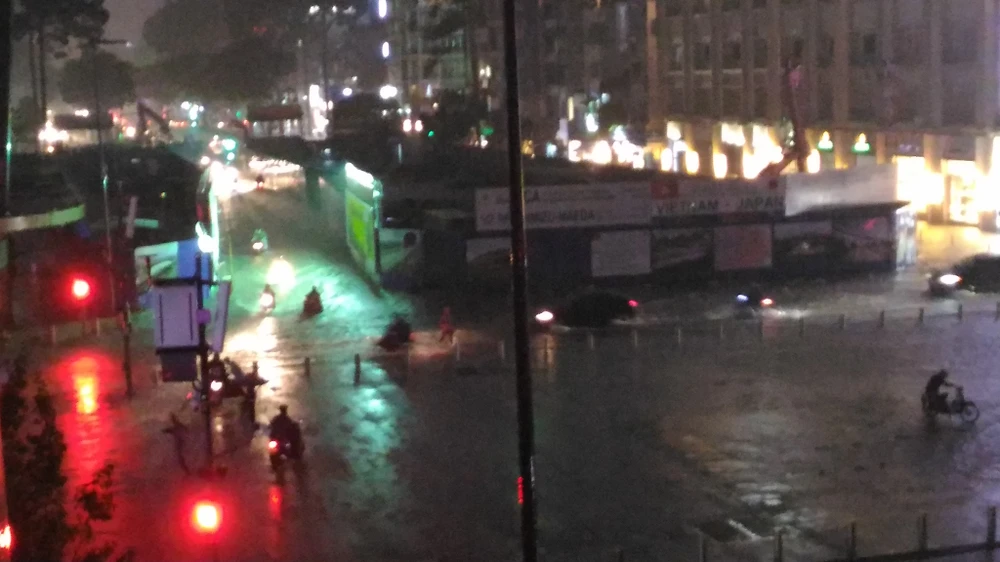 Ngoài trạm Lý Thường Kiệt, nhiều khu vực có vũ lượng mưa rất lớn như Thanh Đa (quận Bình Thạnh) hơn 133 mm, trạm Quang Trung (Gò Vấp) hơn 123 mm, trạm Phước Long (quận 9) vũ lượng mưa hơn 103 mm. Trong ảnh: Ngập ở trung tâm TP.HCM. Ảnh: CTV
