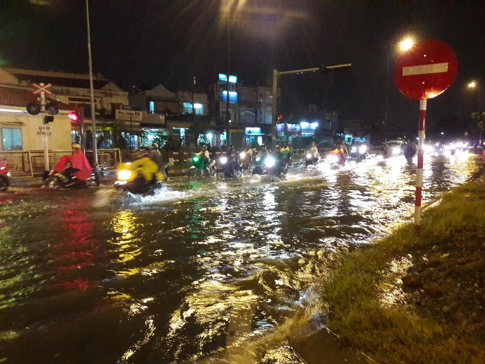 Ngập ở Kha Vạn Cân, Thủ Đức. Ảnh: Hà Phượng